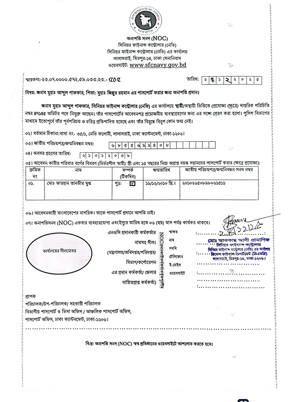 জনাব মুহাঃ আব্দুল গাফফার, NOC ২৩.০৭.০০০০.৫৭২.৫৯.০৩৩.২৩.৫০৫